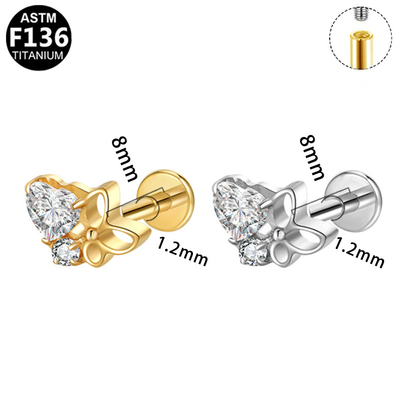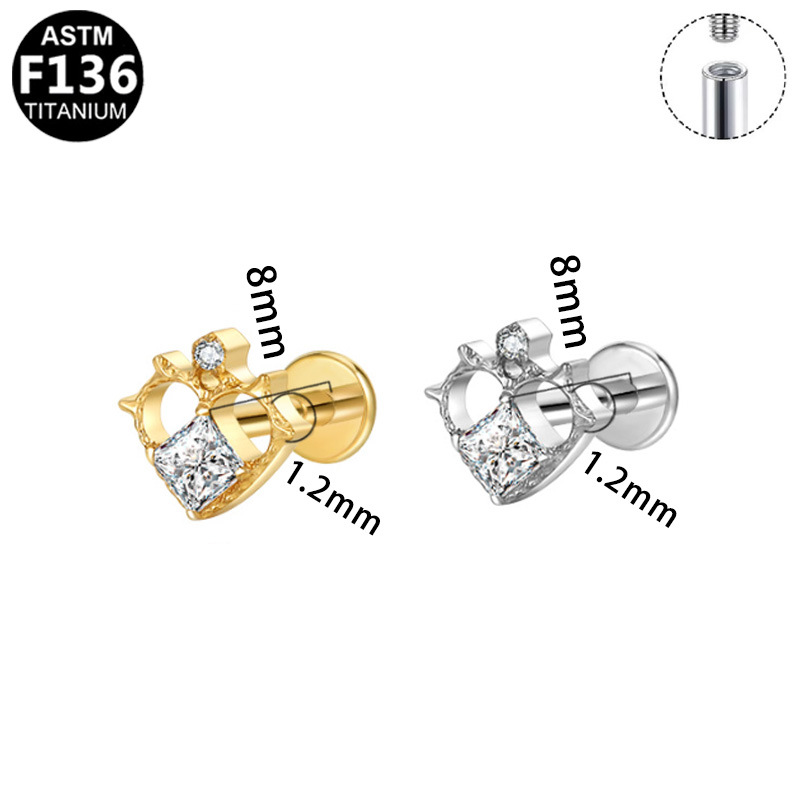Material: G23 pure titanium and inlaid with cubic zirconia , hypoallergenic, no nickel & lead, friendly for sensitive skin.