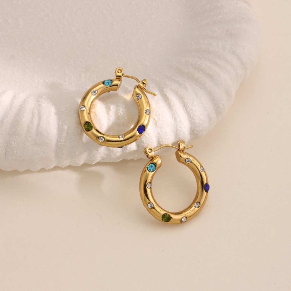Custom Bulk Order Stainless Steel Colorful Crystal Hoop Earrings for Women