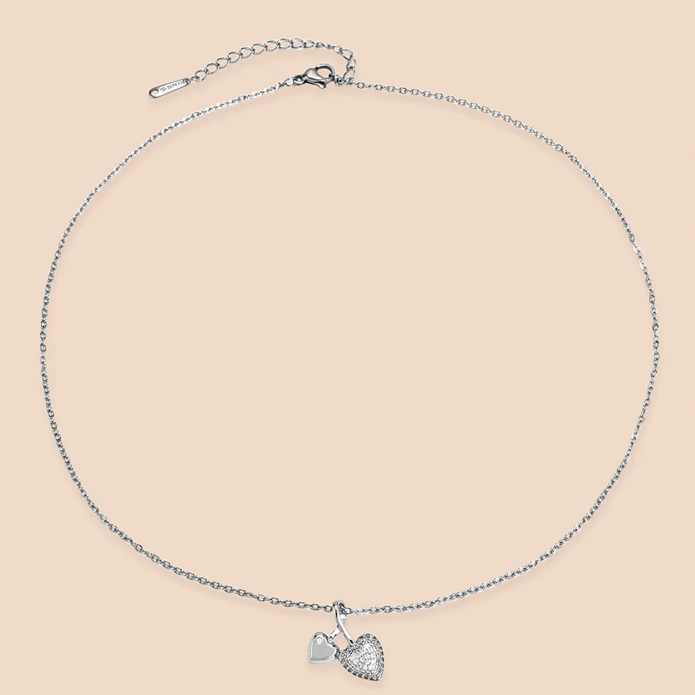 - Versatile Product Extension: This silver heart necklace with cubic zirconia pairs perfectly with simple, pendant-less necklaces, and can also be customized with other types of pendants (such as locket or cross pendants), or transformed into a matching bracelet or earrings from the double-heart collection, creating a harmonious and unified overall look.