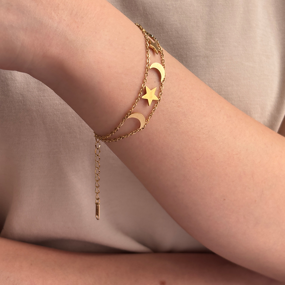 Custom Design Fashion Stainless Steel Star Moon Chain Bracelet for Women