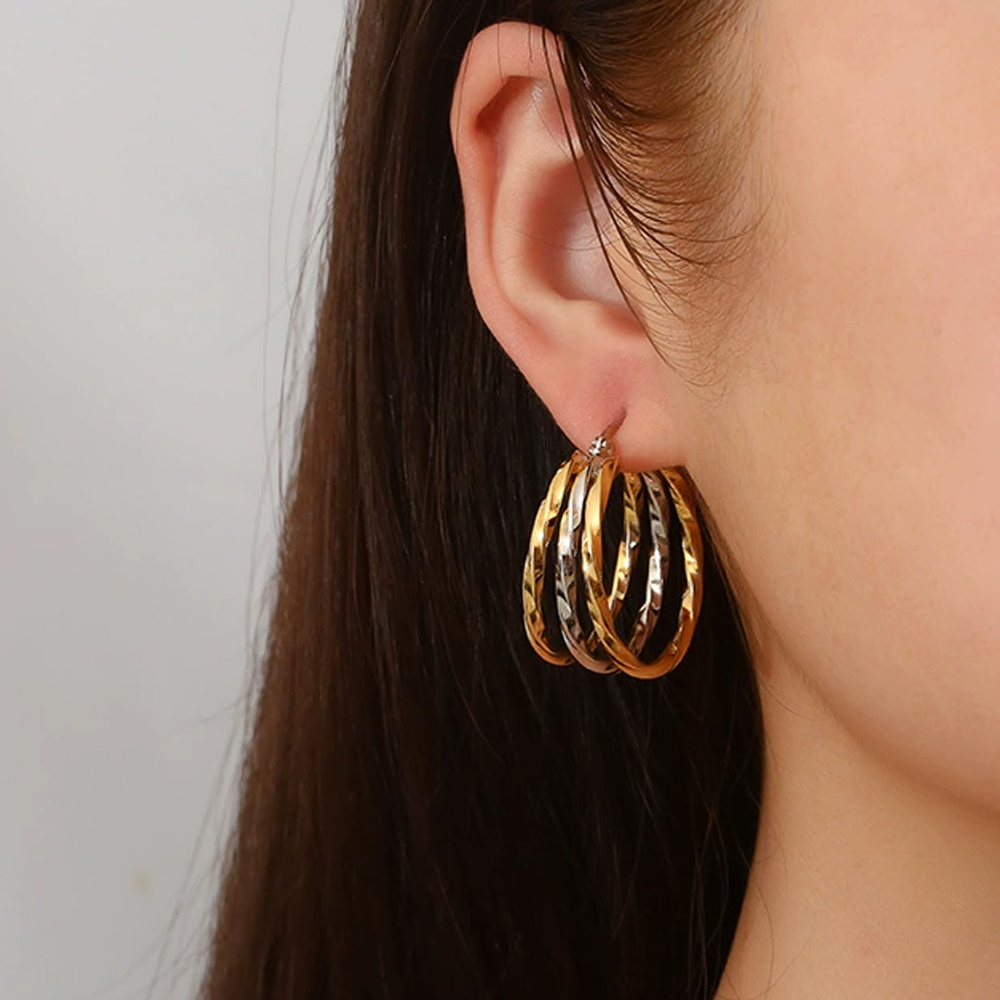 Custom Design PVD Gold Multi-Layer Gradient Stainless Steel Hoop Earrings for Women