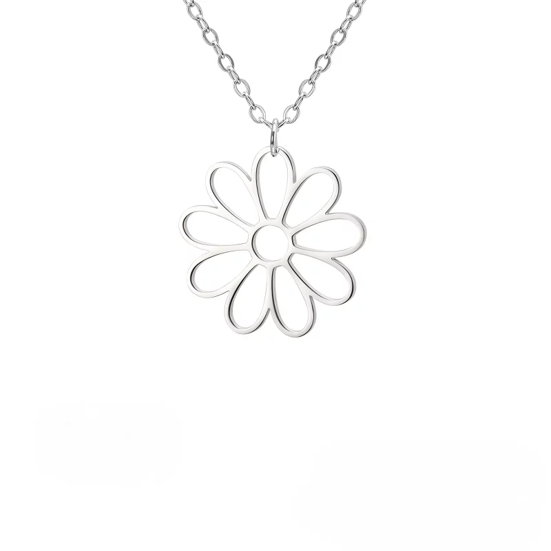 The unique chian necklace are made by stainless steel, with hollowed flower shape charms.