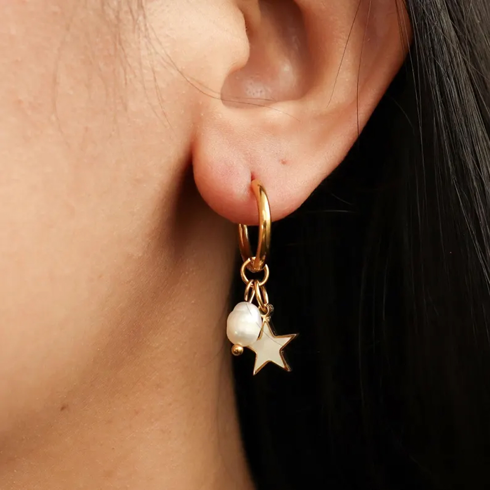 Customizable Fashion Gold Star Pearl Drop Hoop Earrings for Women