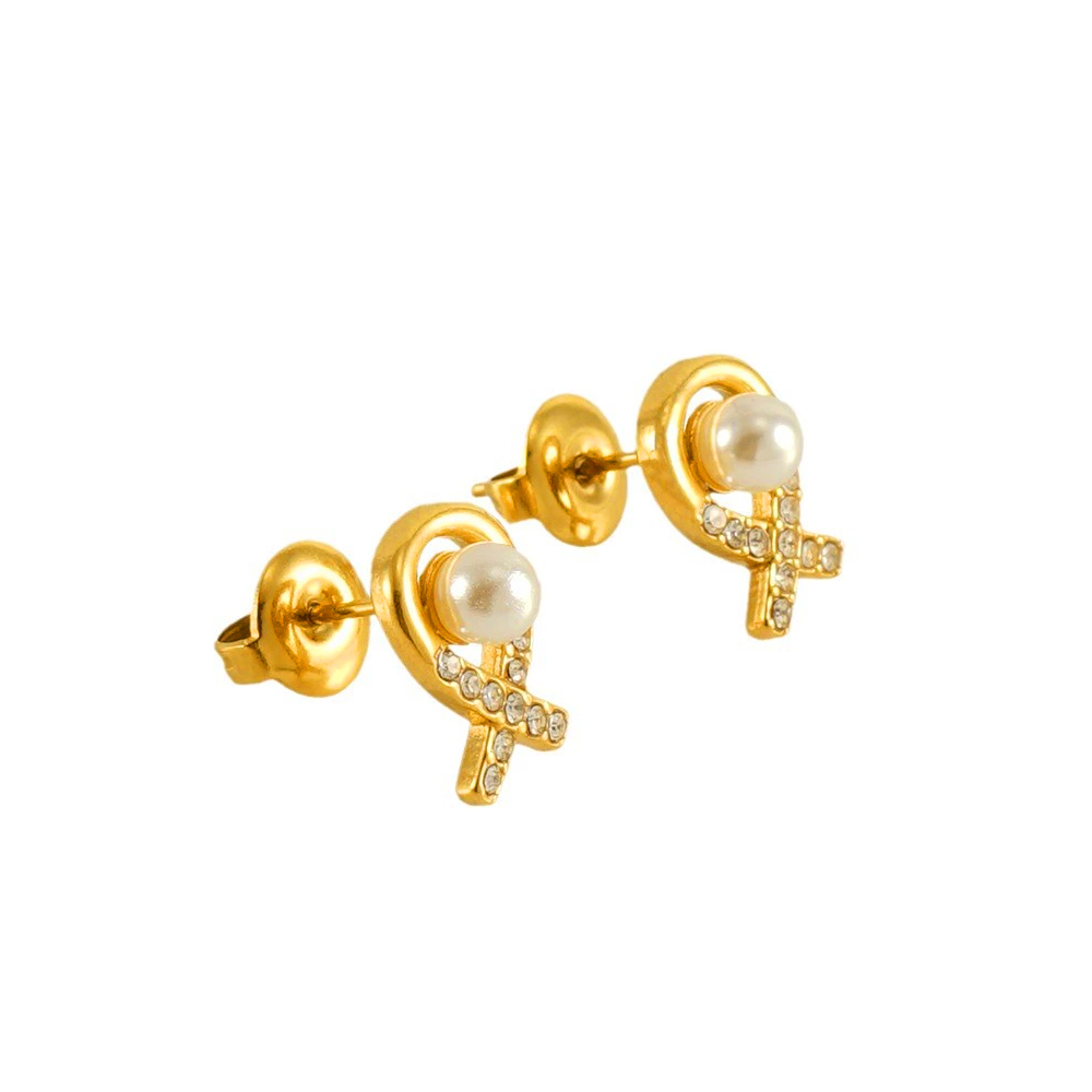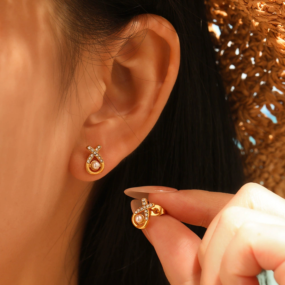 Factory Outlet Custom Dainty Zircon Cross Pearl Stud Earrings for Women