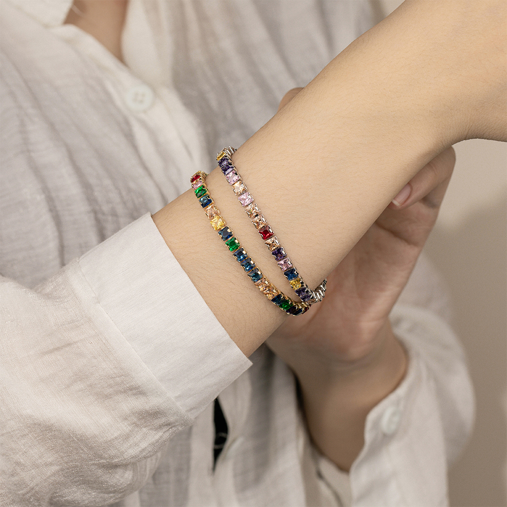Factory Outlet Custom Luxury Elegant Colorful Square Crystal Bracelet for Women
