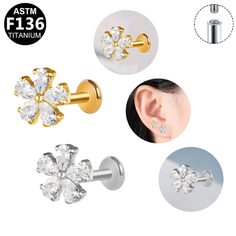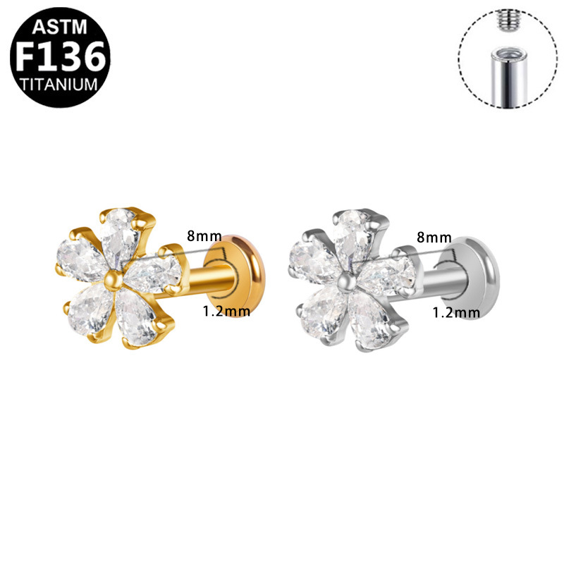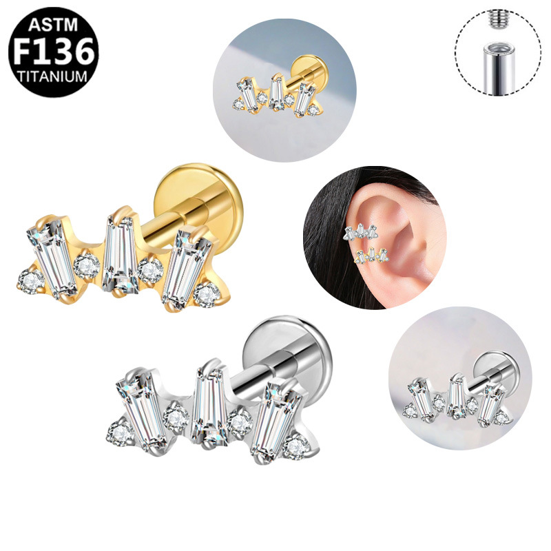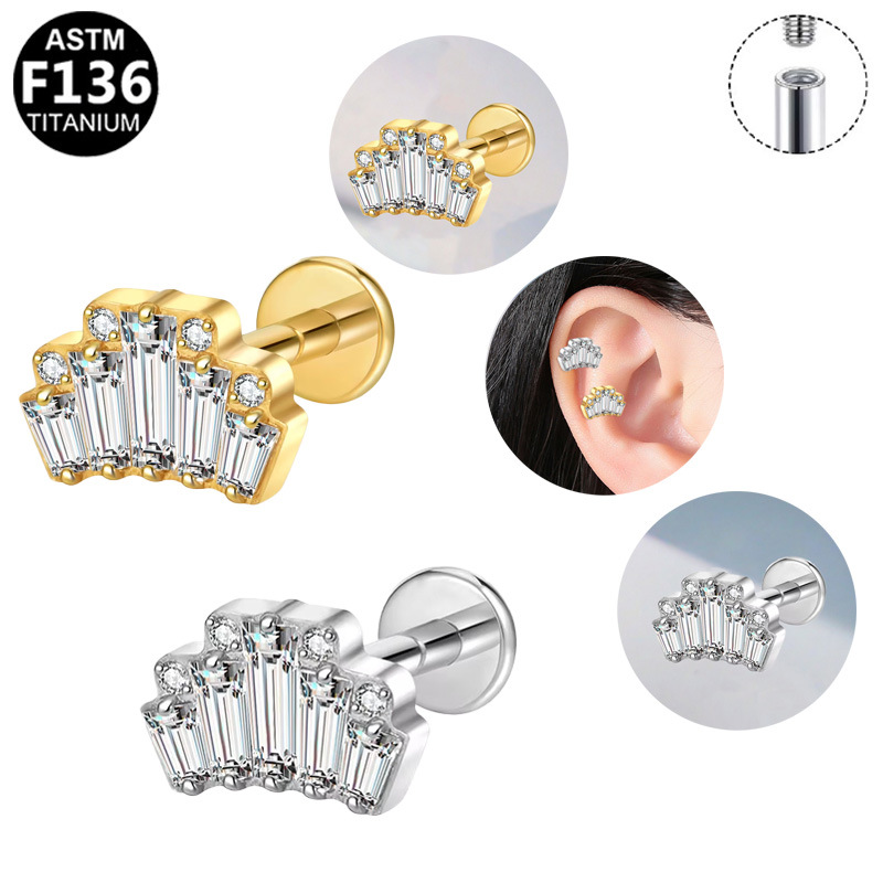 Material: G23 pure titanium and inlaid with cubic zirconia , hypoallergenic, no nickel & lead, friendly for sensitive skin.