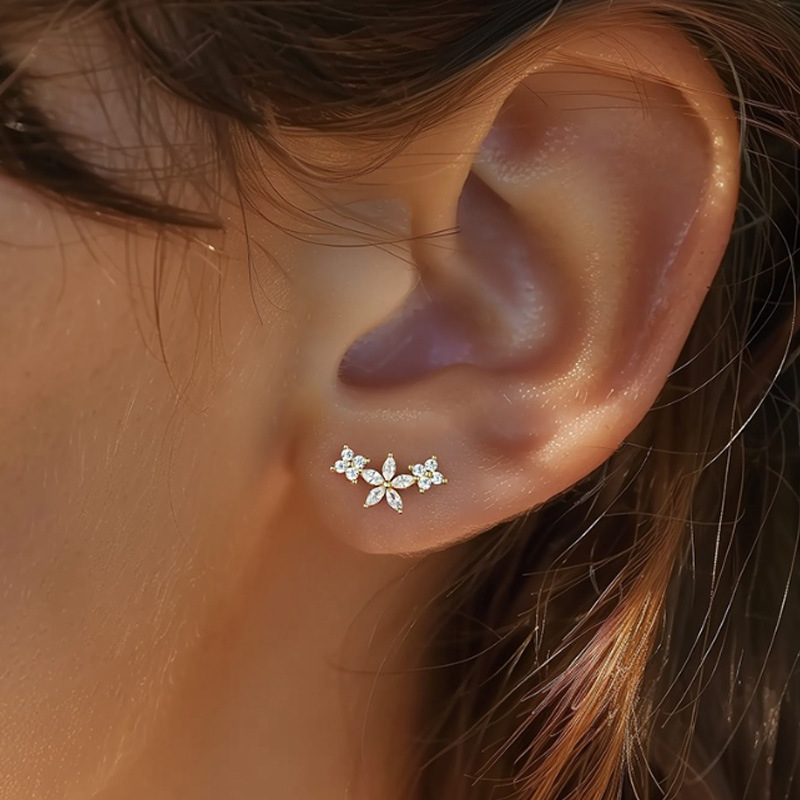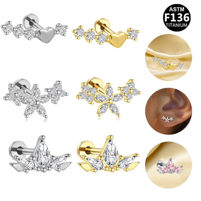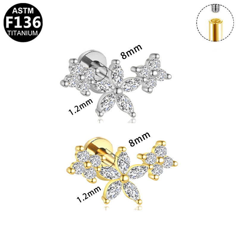 Material: G23 pure titanium and inlaid with cubic zirconia , hypoallergenic, no nickel & lead, friendly for sensitive skin.