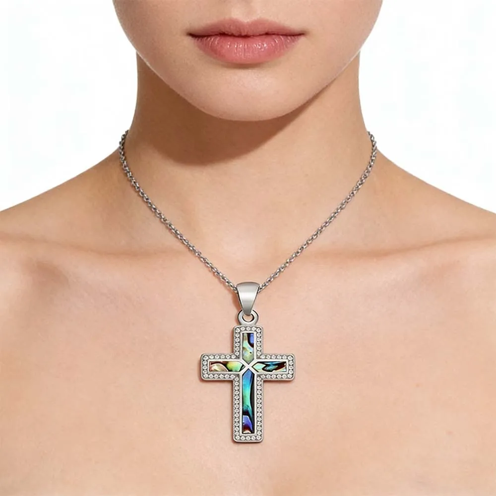 - Skin-safe Abalone Shell Rhinestone Pendant | Test Reports Ready: Crafted with geometric cross abalone shell and 316L stainless steel chains and accessories,Haosen ensures this pendant is hypoallergenic and skin-friendly. The 0.03μm PVD gold finish (up to 0.1μm) creates a tarnish-free, durability-tested seal. Every piece is lead-free and nickel-free, complying with California prop 65 and EU REACH safety standards.
