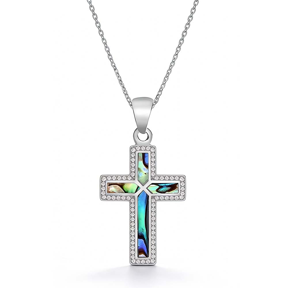 Geometric Cross Abalone Shell Rhinestone Pendant | Custom Branding