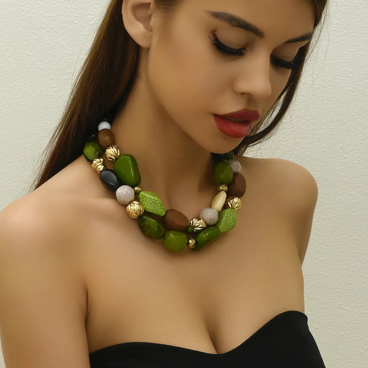 Resin Alloy Exaggerated Bohemian Forest-style Necklace | Flexible Design