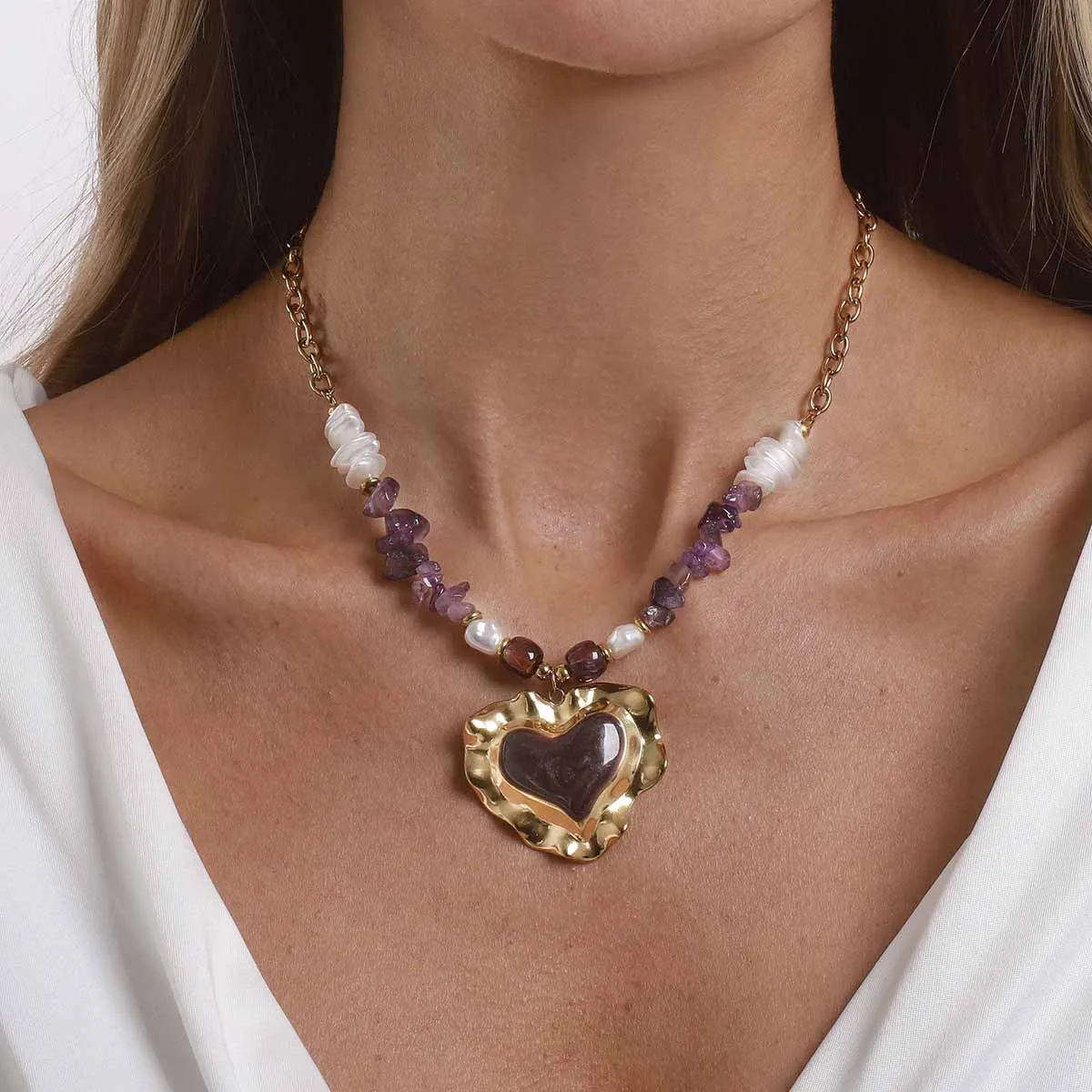 3. Full Bespoke Service & Collection Scaling: These colorful bohemian heart and sun resin-zinc alloy pendants with natural amethyst and imitation pearls—fashionable and versatile stainless steel necklaces for women are made using an electroplating process and feature geometric designs, making them perfect for jewelry brands. The polishing method can be chosen based on your budget: hand polishing delivers a premium mirror finish for high-end collections, while machine polishing ensures cost-effective, high-yield production.
