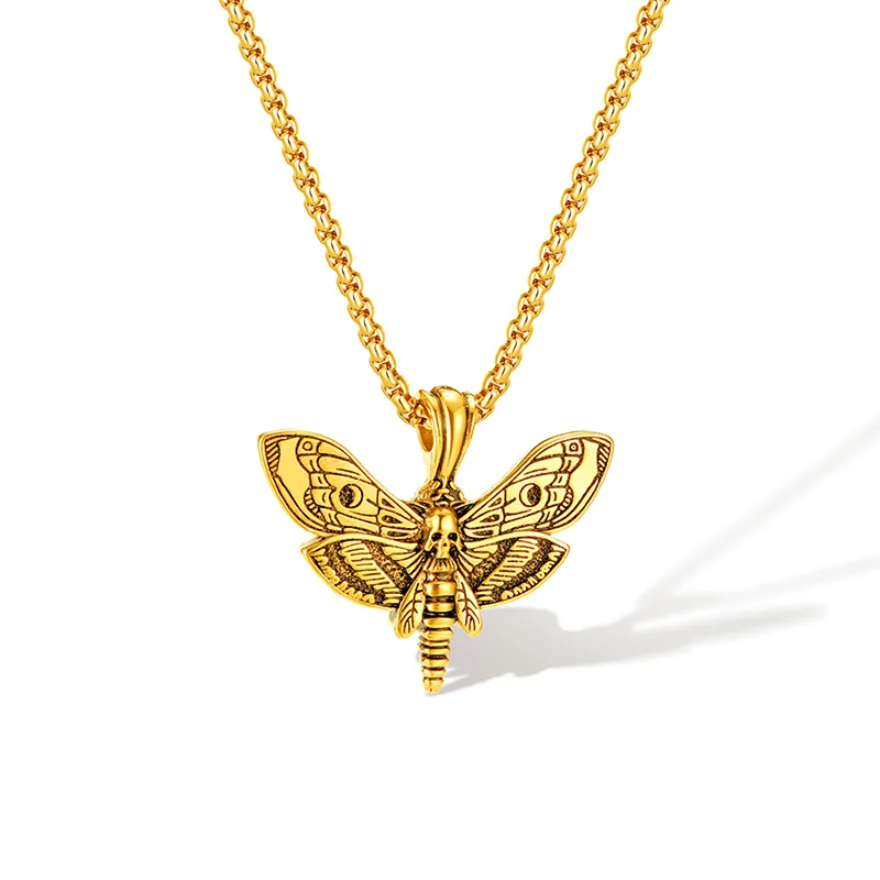 Retro Personalized Creative Stainless Steel Skull Moth Pendant Necklace