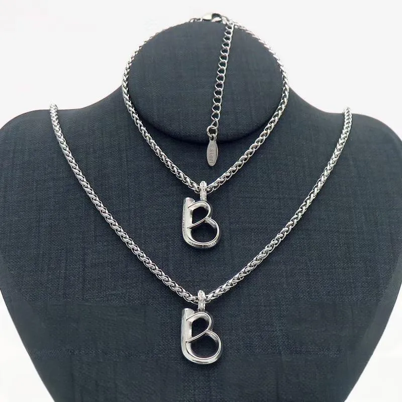 Stainless Steel Bubble Letter B Name Necklace and Bracelet Set