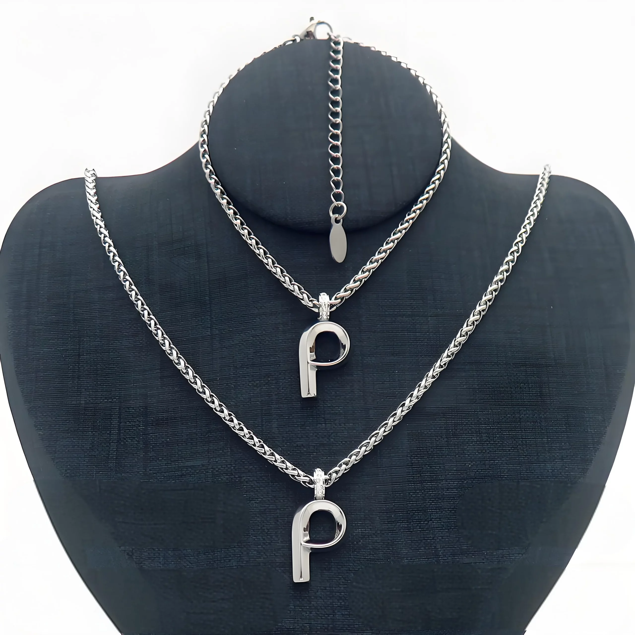 Stainless Steel Bubble Letter P Name Necklace and Bracelet Set