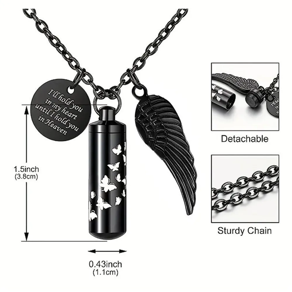 Small Cylinder Urn Locket Necklace with Butterfly Angel Wings Charm Manufacturing for Brands