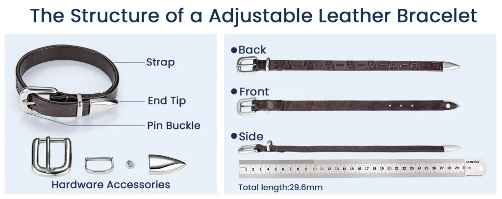 A high-quality adjustable leather bracelet is more than just a strip of hide; it is a precision-engineered combination of leather, hardware, and structural design.